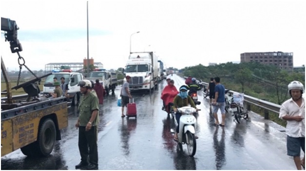 Hiện lực lượng chức năng đang tiếp tục xử lý phân luồng giao thông tránh gây ùn tắc và tiến hành điều tra nguyên nhân vụ việc.