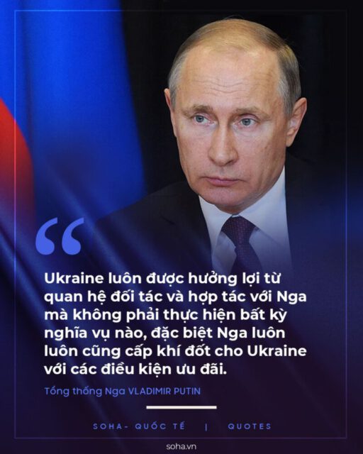Tổng thống Nga V. Putin nói: “Ukraine luôn được hưởng lợi từ quan hệ đối tác và hợp tác với Nga mà không phải thực hiện bất kỳ nghĩa vụ nào, đặc biệt Nga luôn luôn cũng cấp khí đốt cho Ukraine với các điều kiện ưu đãi.”