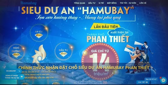 Mặc dù chưa hoàn thành các thủ tục và cơ sở hạ tầng thiết yếu nào nhưng chủ đầu tư dự án đã ký kết hợp đồng kinh tế số 01.2018 (ngày 11/01/2018) với Công ty Cổ phần Tư vấn Đầu tư Đất Biển Vàng niêm yết, rao bán. Nội dung rao bán ghi rõ: “Chính thức nhận đặt chỗ Siêu dự án Hamubay Phan Thiết, giá chỉ từ 14 triệu/m2, chiết khấu lên đến 6%, pháp lý rõ ràng, hạ tầng hoàn chỉnh, với slogan: Đặt chỗ liền tay, nhận ngay lợi nhuận”…