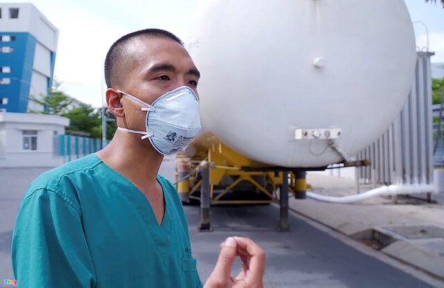 “Hệ thống này được lắp đặt gấp rút trong 2 ngày. Trong khi bác sĩ điều trị cho bệnh nhân thì các kỹ sư khẩn trương lắp đặt đường ống oxy cho cả khu. Hệ thống này đủ cho 72 bệnh nhân dùng máy thở oxy dòng cao (HFNC) cùng lúc”, bác sĩ Nguyễn Đức Tâm, quản lý khu điều trị Nguyễn Văn Quỳ, vừa nói, vừa chỉ vào những đường ống đồng nhỏ đính sát tường. Hệ thống này do doanh nghiệp tư nhân tài trợ.