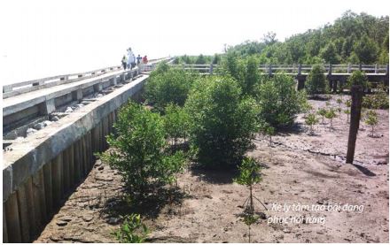 – Cà Mau đã sáng tạo được kè ly tâm tạo bãi để bảo vệ và phát triển đai rừng phòng hộ rất tốt, cho đến nay, đây là phương pháp chống xói lở bờ biển hiệu quả nhất. Trước kia, các kiểu đê biển xây gần bờ đều bị sóng biển đánh sụp đổ. Còn kè ly tâm dựng cách bờ 100-200 m, gồm những cọc bê tông đóng liền nhau, đóng 2 hàng song song cách nhau 1,5 – 2 m và bỏ đá to vào giữa để giảm sóng, giữ phù sa tạo bãi bồi. Nguyên lý như sau, sóng biển vào đến đây sẽ bị phân tán luồn qua kẽ hở các hộc đá và kết quả là lực tàn phá bị triệt tiêu, bờ bên trong được bảo vệ không bị xói lở, nước biển khi trở ra cũng luồn qua hộc đá thì phù sa được giữ lại, vài năm tạo nên bãi bồi. Nếu sát bờ còn rừng tự nhiên thì rừng sẽ lan ra bãi bồi, nếu không còn rừng tự nhiên thì trồng rừng cũng tạo được khu rừng mới. Cà Mau làm thí điểm kè ly tâm tạo bãi vào năm 2010 với 300 m, thành công nên mở rộng đến nay bằng nhiều nguồn vốn đã làm được 40 km, khôi phục gần 300 ha rừng; phương pháp này đang được các tỉnh ở ĐBSCL học tập.