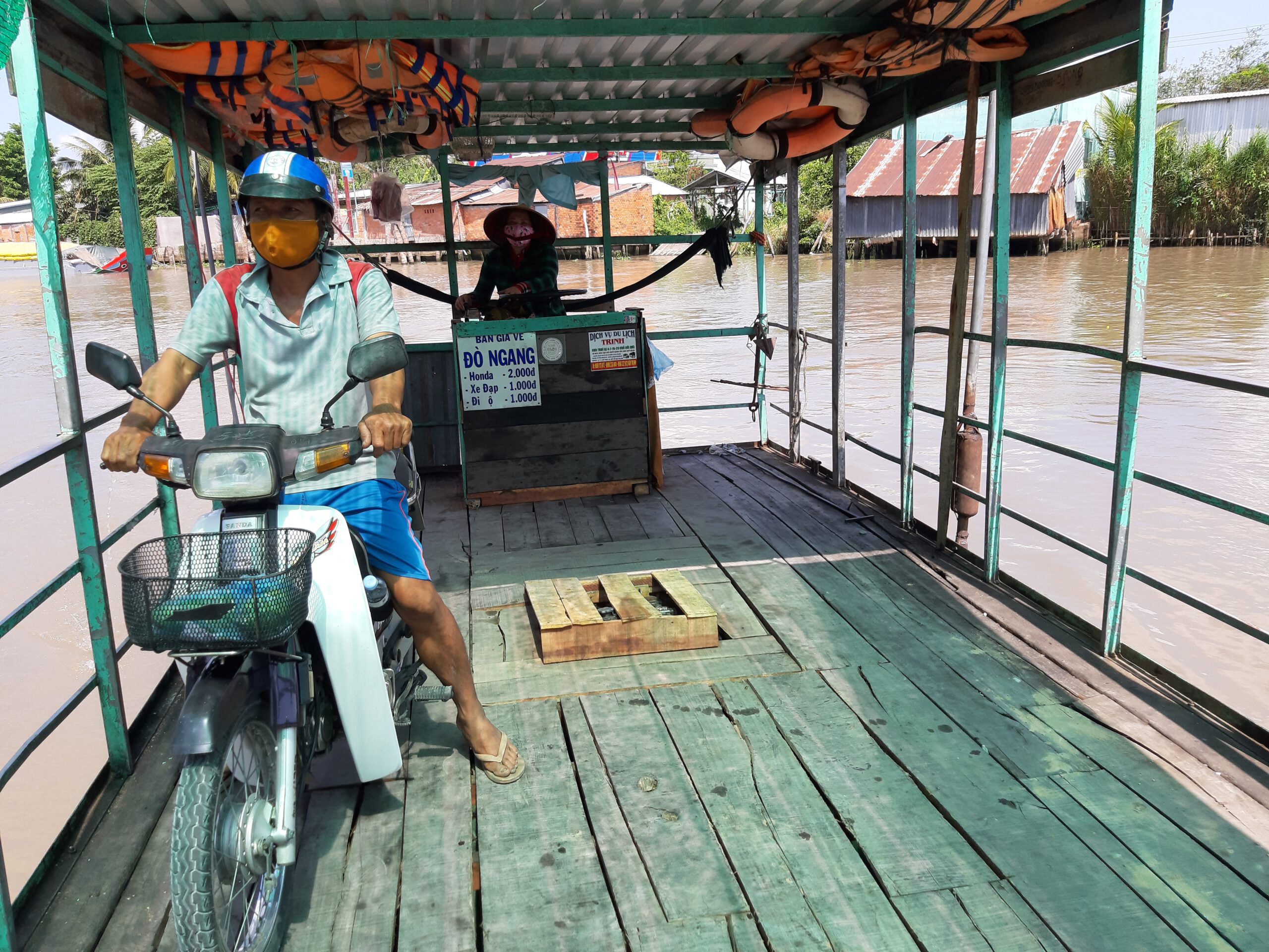 Vi hành về tỉnh tỉnh Hậu Giang, liền kề với Cần Thơ vào ngày Chủ nhật 05/4, cảnh thanh bình với các bến đò ngang vẫn hoạt động bình thường, không có bến nào phải ngưng nghỉ. Riêng với việc phải mang khẩu trang phòng dịch Covid-19 được khách qua sông tuân thủ và chấp hành rất tốt.
