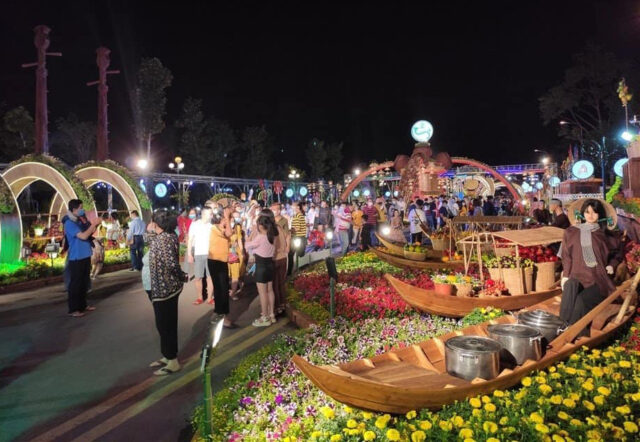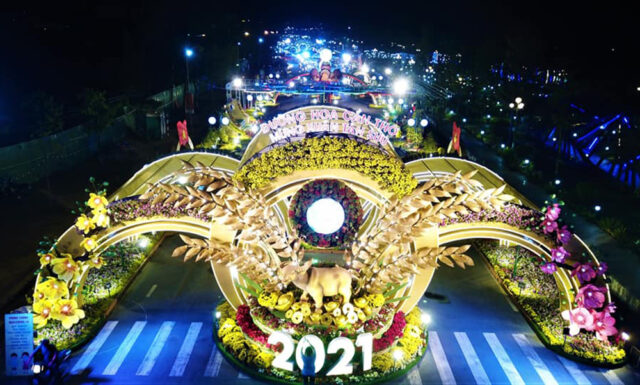 Đường hoa nghệ thuật đón Xuân Tân Sửu của thành phố Cần Thơ khai mạc tối 27 Tết và do dịch bệnh COVID-19 nên bế mạc vào tối 30 Tết, đóng cửa để ngày Mồng 6 Tết mới dọn dẹp, từ đó đêm đêm tỏa ánh điện lung linh buồn.