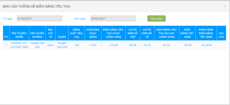 - Báo cáo điện năng tiêu thụ của một tủ: