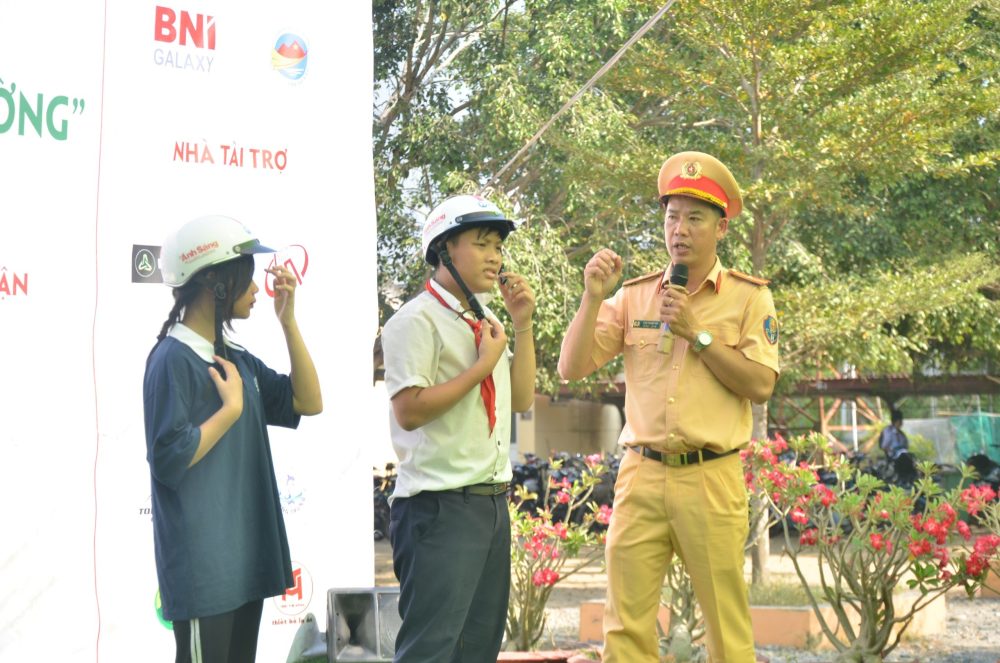 Tại buổi lễ tuyên truyền Thiếu tá Cao Thanh Vũ – Cán bộ tuyên truyền phòng CSGT, công an tỉnh Tây Ninh đã cung cấp cho các em học sinh những kiến thức quan trọng về ATGT, các tai nạn nghiêm trọng khi không đội mũ bảo hiểm, không chấp hành luật ATGT, cách đội mũ bảo hiểm đúng cách khi tham gia giao thông. Qua các dẫn chứng giúp các em học sinh và phụ huynh hiểu hơn về tầm quan trọng của việc đội mũ bảo hiểm và chấp hành luật giao thông.