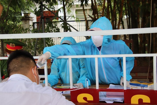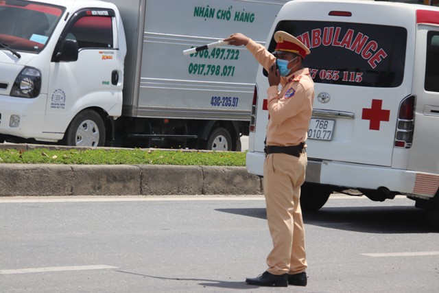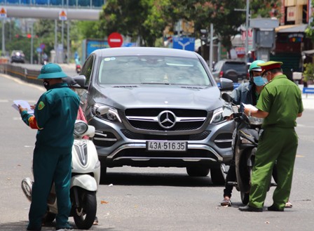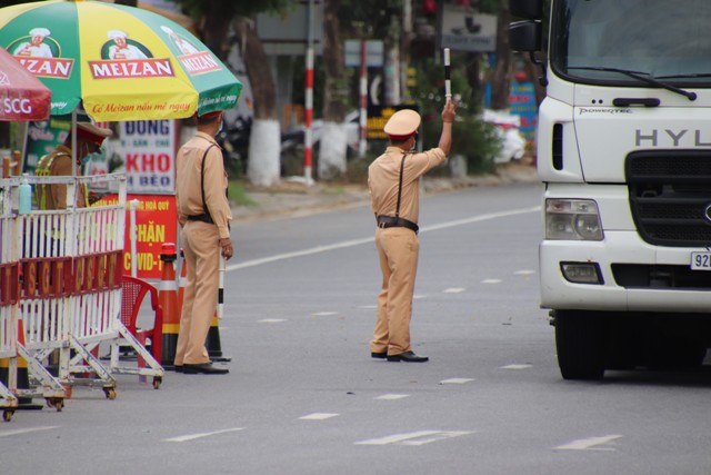 Dù thời tiết nắng nóng trên 37 độ C, nhưng lực lượng liên ngành gồm CSGT, CSTT, Bộ đội, TTGT, dân phòng, thanh niên tình nguyện vẫn nghiêm túc thực hiện việc yêu cầu người, phương tiện vào thành phố dừng tại chốt để đo thân nhiệt, khai báo y tế bằng máy quét QR-Code tự động, kiểm tra kết quả xét nghiệm SARS-CoV-2 và những giấy tờ liên quan trước khi lưu thông vào Trung tâm TP Đà Nẵng.