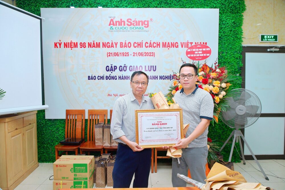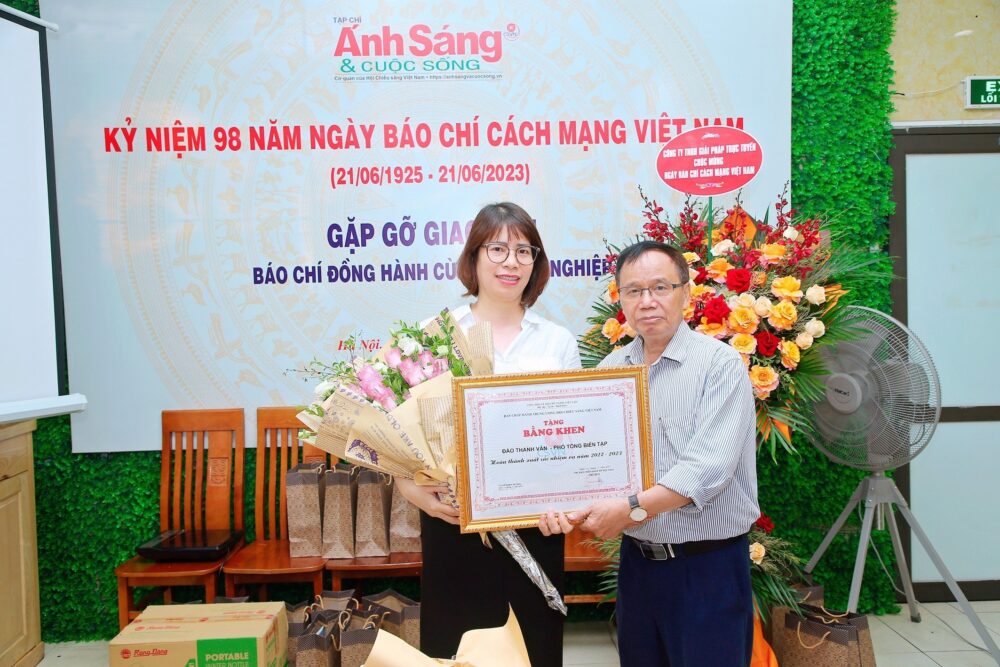 Nhân dịp này, thay mặt Hội chiếu sáng Việt Nam, PGS. TS Nguyễn Hồng Tiến đã trao tặng Bằng khen của Hội, Tổng biên tập Lưu Huyền Hậu trao Giấy khen của Tạp chí cho các tập thể và cá nhân đã có thành tích xuất sắc trong hoạt động báo chí và hoạt động công tác xã hội, thiện nguyện trong năm 2022 – 2023.