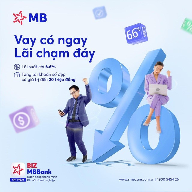 Cụ thể, lãi suất hiện tại được MB đưa ra với các khoản vay thuộc chương trình này có mức ưu đãi chỉ 6,6%/năm, thấp hơn nhiều so với các ngân hàng khác. Mức lãi suất trên như mở nút thay về vấn đề lãi suất, vốn càng được doanh nghiệp cân nhắc trong thời điểm khó khăn như hiện tại. Thời gian phê duyệt hồ sơ vay cũng được tinh gọn, chỉ còn 3 ngày. Việc triển khai đồng bộ trên cả 2 nền tảng là Internet Banking và ứng dụng điện thoại giúp giảm thiểu thời gian, cắt bớt thủ tục rườm rà. Hồ sơ cũng được tối giản, linh hoạt, thiết kế dành riêng cho mô hình quản lý tài chính của doanh nghiệp doanh thu dưới 100 tỷ. Không những vậy, khi mở tài khoản tại MB và thực hiện giao dịch vay vốn tại MB, khách hàng còn có cơ hội nhận được tài khoản Ngũ quý và miễn phí toàn bộ phí chuyển tiền trong và ngoài hệ thống MB.