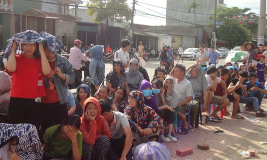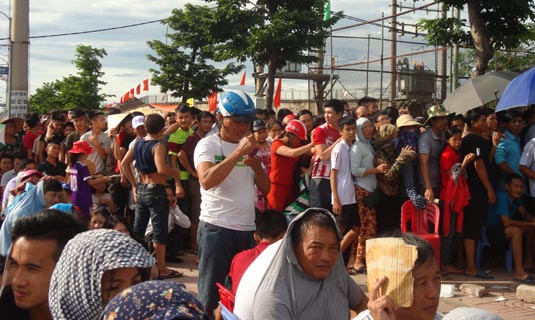 Ngay từ chiều 10.8, hàng trăm người dân đã xí chổ bằng cách đặt các ghế nhựa và các viên gạch ghi tên theo thứ tự.