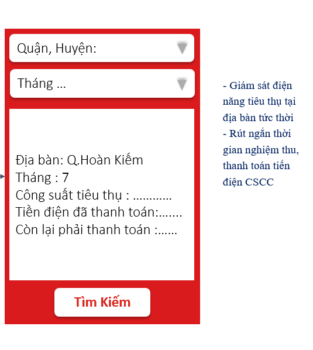 Chức năng tra cứu điện năng tiêu thụ theo địa bàn và theo trạm đèn