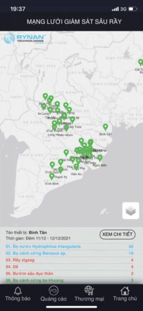 Sau đó, hệ thống giám sát sẽ sử dụng thuật toán trí tuệ nhân tạo để tự động xác định, thống kê số lượng, mật độ và phân loại các chủng sâu rầy cũng như xem loại côn trùng nào có lợi hay có hại. Hiện nay, theo TS. Thanh Mỹ, hệ thống giám sát sâu rầy thông minh của Rynan đã có khả năng nhận diện được khoảng 120 loại côn trùng khác nhau như rầy nâu, rầy xanh đuôi đen, rầy lưng trắng, bướm sâu cuốn lá, bướm sâu đục thân, bướm sâu keo mùa thu, bọ xít, kiến ba khoang,… Các kỹ sư ở Rynan đã sử dụng công nghệ học máy để “dạy” cho hệ thống học thông tin về các loại côn trùng và hình dạng của mỗi loại. Với những loại côn trùng chưa biết, nhóm nghiên cứu sẽ trao đổi với Trung tâm Bảo vệ Thực vật phía Nam để nhận diện và liên tục cập nhật dữ liệu. “Do áp dụng công nghệ học máy, theo thời gian, khi có càng nhiều dữ liệu được thu thập thì hệ thống sẽ càng chính xác”, TS. Thanh Mỹ nói.