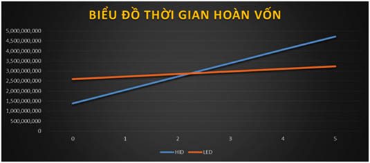 Từ kết quả so sánh, đánh giá và tính toán trên cho thấy: Việc thiết kế và áp dụng đèn LED giúp chủ đầu tư tiết kiệm được 206,000 kWh điện năng mỗi năm, tiết kiệm hơn 4 lần so với hệ thống chiếu sáng cũ sử dụng cao áp và các loại đèn truyền thống tiêu tốn nhiều điện năng khác dùng cho các mục đích chuyên dụng khác với, tương ứng với số tiền tiết kiệm được mỗi năm gần 380,000,000 VND.Thời gian hoàn vốn khi áp dụng LED so với cao áp là khoảng 2 năm, rất có lợi cho chủ đầu tư sau điểm hoàn vốn với số tiền điện tiết kiệm được hàng năm; Việc tiết kiệm điện nêu trên cũng gián tiếp giảm lượng khí thải nhà kính tương ứng với 168 nghìn tấn CO2, tương đương với việc giảm thiểu 1680 nghìn tấn CO2 sau 10 năm vòng đời dự án.