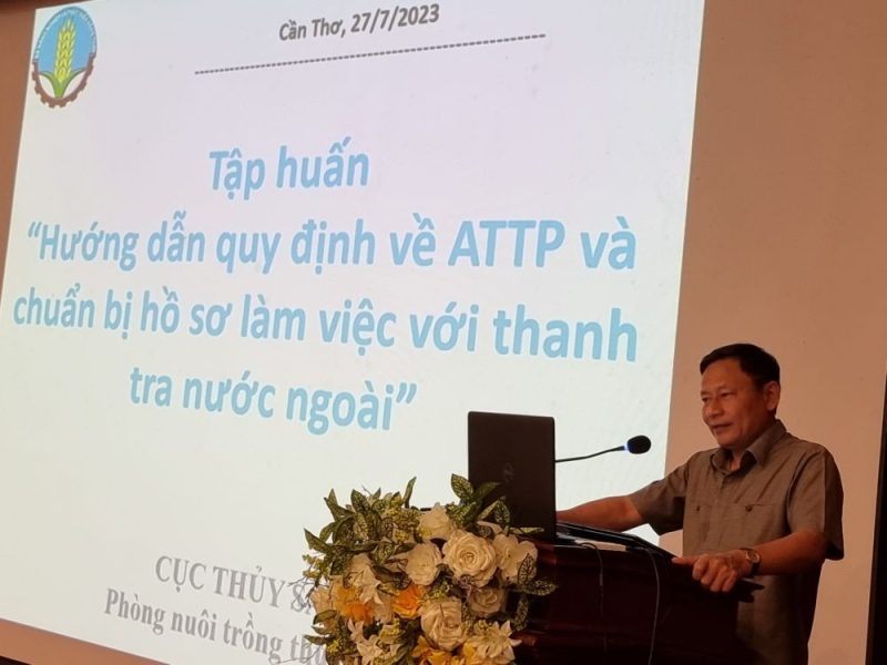 Ngày 27/7, tại thành phố Cần Thơ, Cục Thủy sản tổ chức tập huấn ‘Hướng dẫn thẩm định, giám sát và chứng nhận điều kiện đảm bảo an toàn thực phẩm trong công đoạn nuôi”.