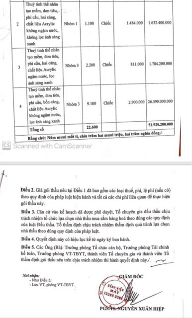 Theo ý kiến của Doanh nghiệp và bạn đọc thì hồ sơ mời thầu ở Bệnh viện Mắt Trung ương, ngày 14/9/2021, Giám đốc bệnh viện mát TW ký Quyết định số 989/QĐ-BVMTW “phê duyệt kế hoạch lựa chọn nhà thầu gói thầu: Mua sắm thủy tinh thể nhân tạo đơn tiêu năm 2021 bằng nguồn thu dịch vụ kỹ thuật y tế và các nguồn thu hợp pháp khác của Bệnh viện”. Đến ngày 22/10/2021, sau khi có tờ trình của Tổ chuyên gia đấu thầu, Giám đốc bệnh viện ký Quyết định số 1140/QĐ-BVMTW “phê duyệt hồ sơ mời thầu gói thầu: Mua sắm thủy tinh thể nhân tạo đơn tiêu năm 2021”.