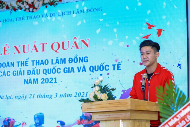 Thay mặt cho đoàn thể thao Lâm Đồng, Trưởng đoàn thể dục thể thao tỉnh tham gia các giải thể thao quốc gia và quốc tế năm 2021 hứa đoàn kết thi đấu hết mình vì màu cơ sắc áo của tỉnh nhà, thi đấu với tinh thần thể thao chân chính và cao thượng, quyết tâm hoàn thành xuất sắc nhiệm vụ được giao.
