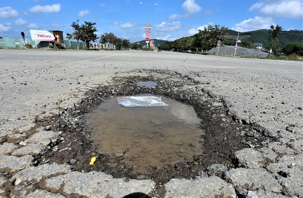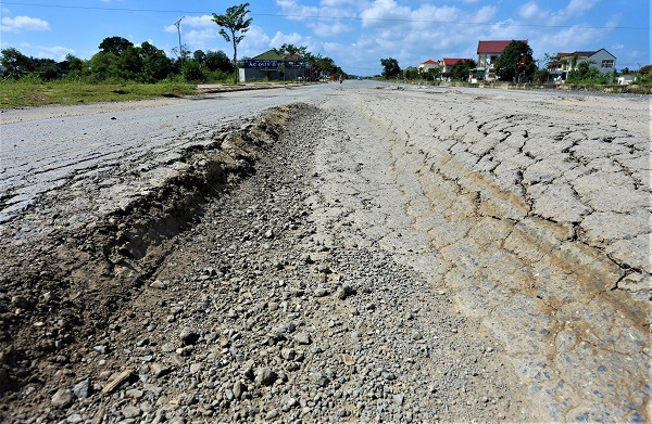 Được đầu tư 290 tỷ đồng cho gần 2 km đường, hơn chục năm vẫn chưa hoàn thành thì nay đã xuất hiện tình trạng trồi lún, bong tróc rất nguy hiểm cho người và phương tiện tham gia giao thông.