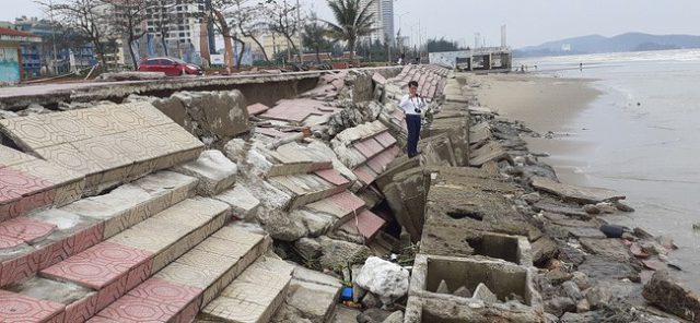Trong đó, kè trọng lực bị sập, xâm thực vào bờ dài khoảng 200m. Kè xây đá bị sạt lở, đường dạo bộ bị hư hỏng nặng khoảng 500m. Thậm chí, đoạn quảng trường Bình Minh cũng bị hư hỏng thêm với bê tông đường kè, chân kè bị sập khoảng 300m ở phía nam quảng trường.