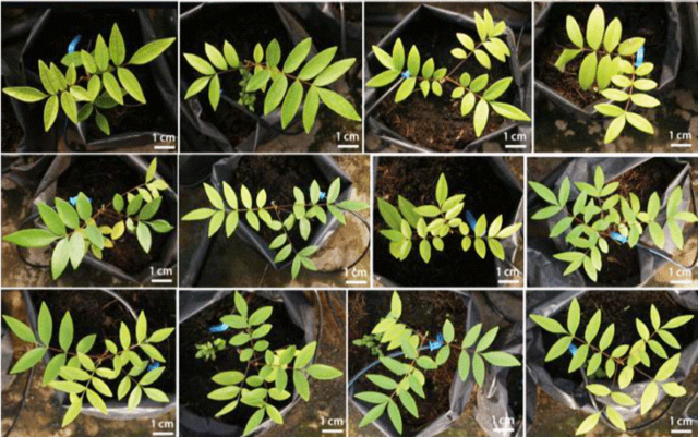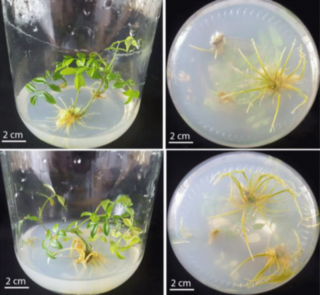 Cụ thể, cây in vitro được nuôi cây từ phôi vô tính trong phòng có điều kiện chiếu sáng bằng đèn LED, với tỷ lệ đèn đỏ từ 80%, kết hợp đèn xanh từ 20%, cường độ ánh sáng 30 ± 2 μmol m-2 s-1, nhiệt độ duy trì ở 25 ± 2°C và độ ẩm của phòng đảm bảo từ 70-80%, thời gian chiếu sáng 12 giờ/ngày. Các cây invitro sau 40 ngày trồng ở vườn ươm đều khỏe mạnh, rễ hoàn chỉnh.