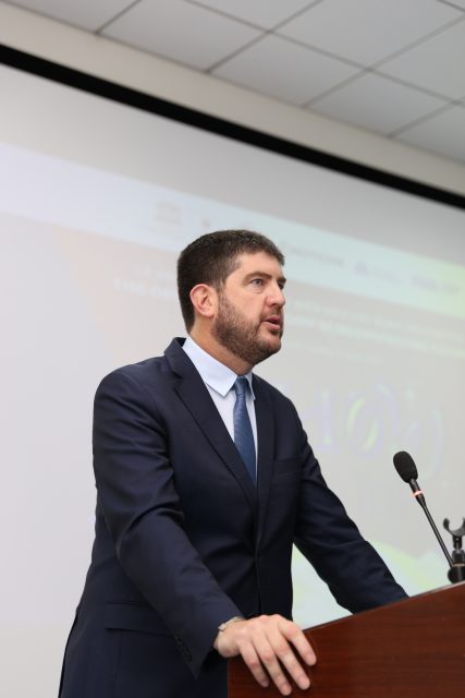 Hình 5. Dự buổi lễ khai giảng, Bí thư Tỉnh Đoàn Bình Phước Trần Quốc Duy (bìa trái) cho rằng khóa học giúp người trẻ phát huy tư duy sáng tạo trong lĩnh vực làm phim, từ đó góp sức cho việc phát triển ngành điện ảnh Việt Nam