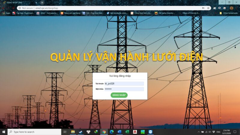Bước 3: Vào chương trình oms2.cpc.vn thao tác cập nhật có điện/mất điện bình thường như trên máy tính.