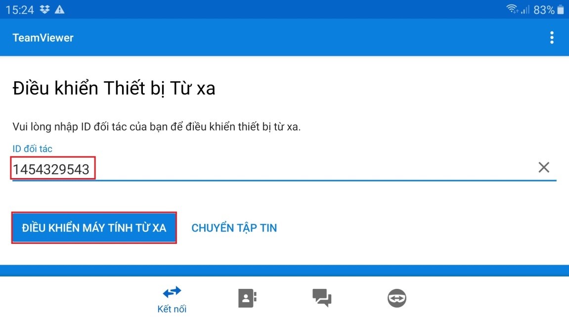 Bước 2: Cài đặt TeamViewer dành cho Android và iOS trên điện thoại di động. Nhập ID và Password của máy tính cần điều khiển từ xa