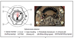 - Điều khiển khối khuếch đại tín hiệu phát hiện khói: bật tắt LED phát hồng ngoại, xử lý tín hiệu khói.