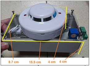Hình 8 là hệ thống sau khi đã hoàn thiện, phần mạch đo và khối điều khiển trung tâm đặt bên trong hộp, phần cảm biến khói và cảm biến nhiệt độ, độ ẩm được đặt phía ngoài cùng, không bị che chắn để đảm bảo hoạt động tốt nhất.