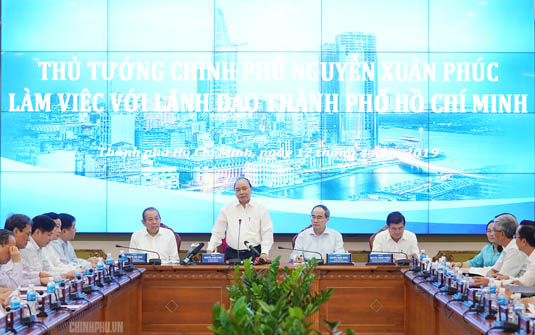 Phát biểu tại cuộc làm việc, Thủ tướng bày tỏ vui mừng về kết quả mà TPHCM đạt được như GRDP tăng cao hơn mức bình quân chung của cả nước. Đầu tư nước ngoài tiếp tục đứng thứ 2 cả nước với nhiều dự án có chất lượng hơn. Năng suất lao động bình quân cao gấp 3 lần của cả nước. Tinh thần tiên phong, tính dẫn đầu của Thành phố vẫn được khẳng định trong hành động, trong chỉ đạo và những công việc liên quan, Thủ tướng nêu rõ.