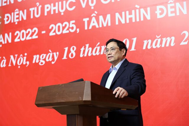 Chiều ngày 18/1, Thủ tướng Phạm Minh Chính, Chủ tịch Ủy ban Quốc gia về chuyển đổi số chủ trì Hội nghị trực tuyến toàn quốc triển khai Đề án phát triển ứng dụng dữ liệu về dân cư, định danh và xác thực điện tử phục vụ chuyển đổi số quốc gia giai đoạn 2022-2025, tầm nhìn đến năm 2030.