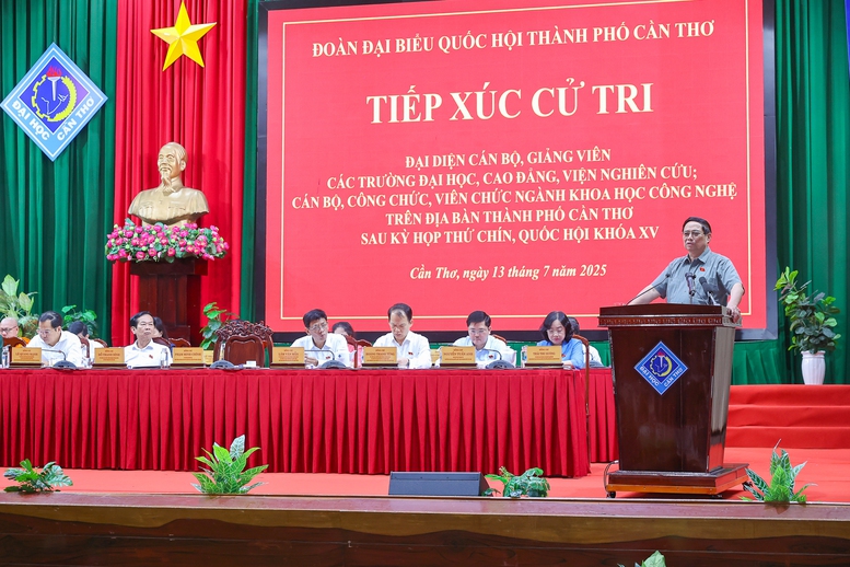 Chiều 13/7, tại TP. Cần Thơ, Thủ tướng Chính phủ Phạm Minh Chính cùng Đoàn đại biểu Quốc hội TP. Cần Thơ tiếp xúc cử tri là đại diện cán bộ, giảng viên các trường đại học, cao đẳng, viện nghiên cứu, cán bộ, công chức, viên chức ngành khoa học công nghệ.