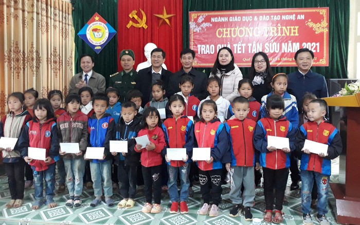 Sở Giáo dục và Đào tạo Nghệ An vừa thăm và trao quà tết cho 600 giáo viên và học sinh ở các huyện miền núi: Con Cuông, Tương Dương, Kỳ Sơn, Quế Phong, Quỳ Châu, Quỳ Hợp và Tân Kỳ của tỉnh Nghệ An.